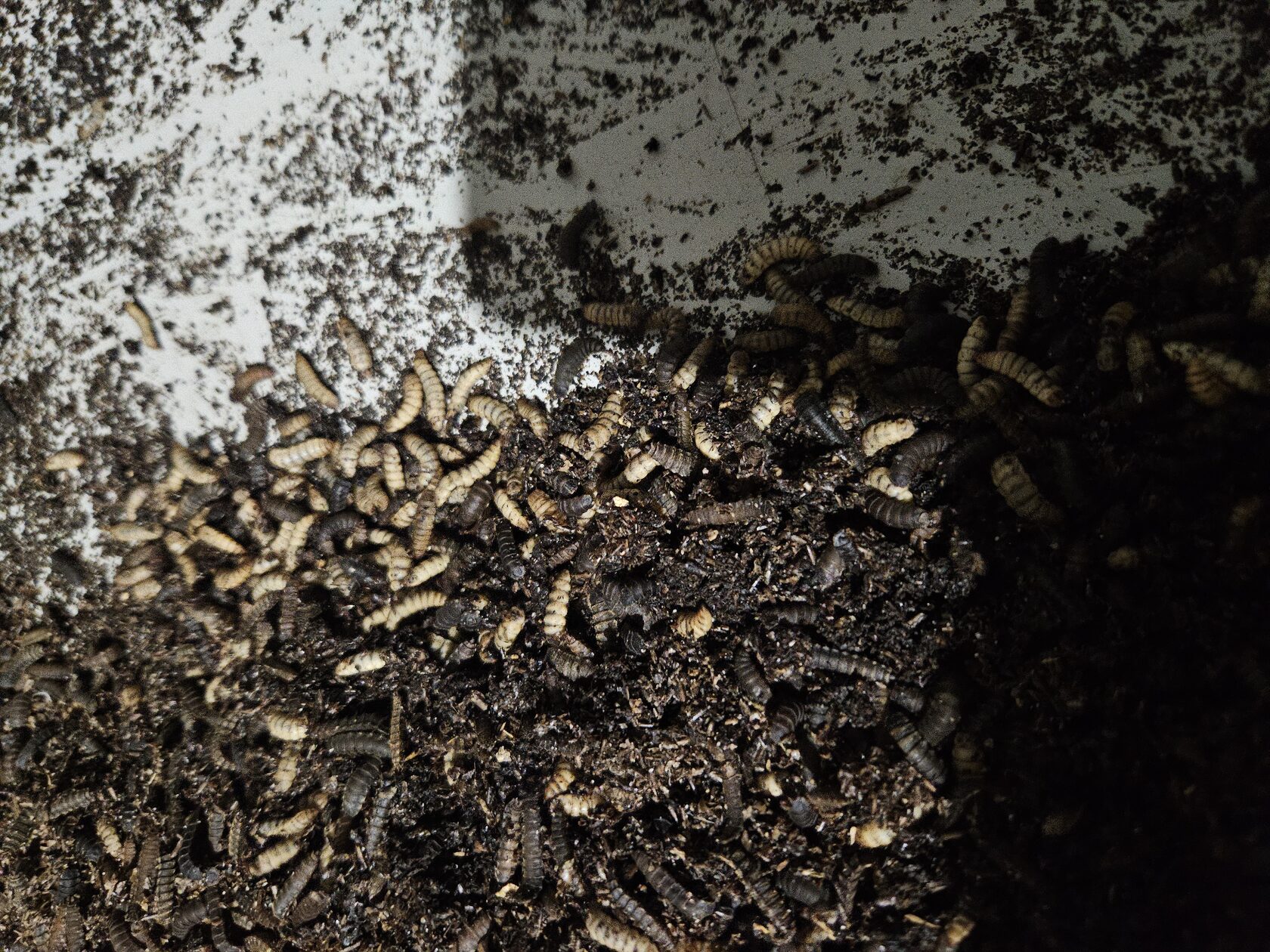 Мы начали экспериментировать с разведением мух черной львинки (Black Soldier Fly) и утилизацией органических отходов и навоза с местных сельскохозяйственных предприятий. Черная львинка, отлично прижилась в инсектарии с существующей люцилией Цезарь (Lucilia caesar). Выращивание черной львинки благодаря своей способности перерабатывать органику, оказалось простым и эффективным процессом.